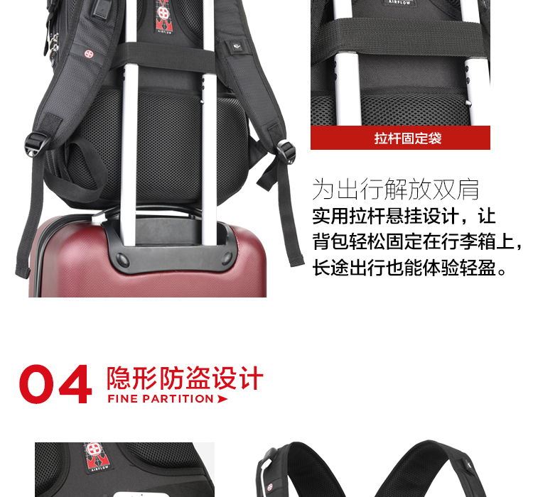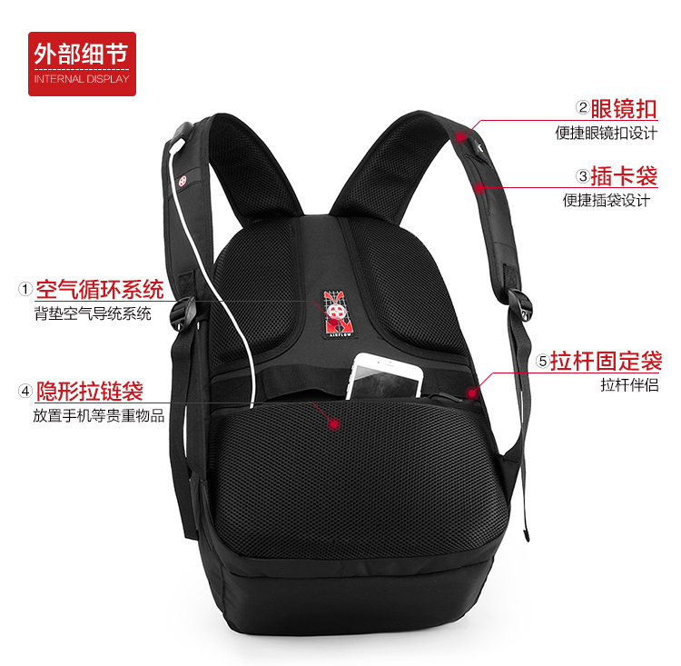 A pull rod can be inserted in the back, and a card and glasses can be inserted in the shoulder strap,have a hide zipper pocket.