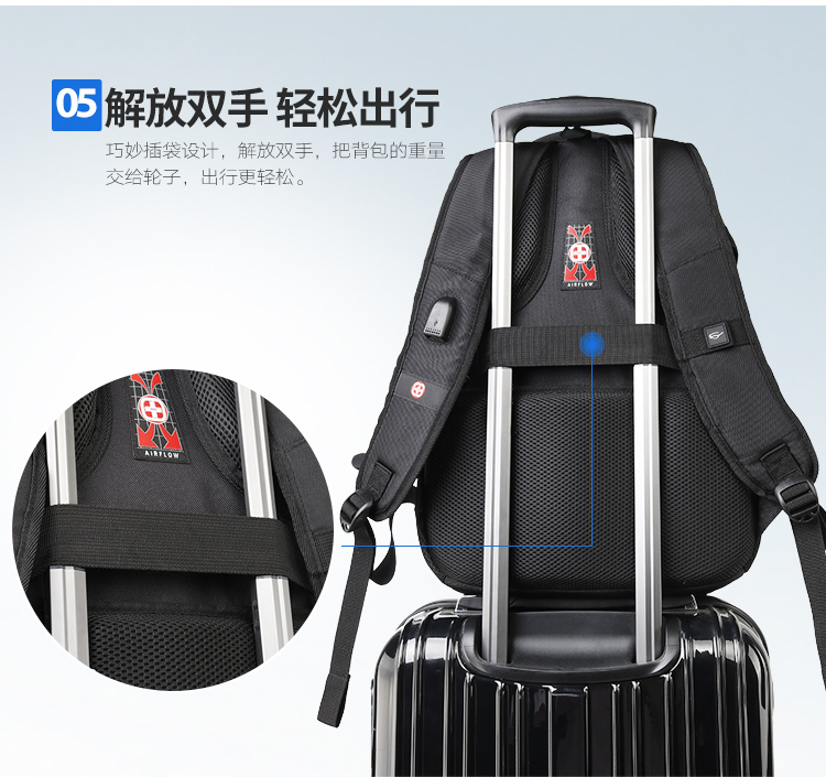 3:A pull rod can be inserted in the back, and a card and glasses can be inserted in the shoulder strap,have a hide zipper pocket;