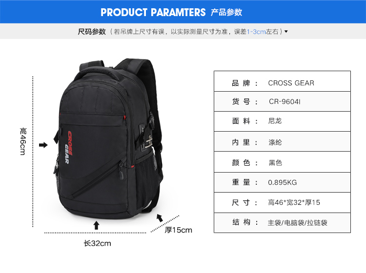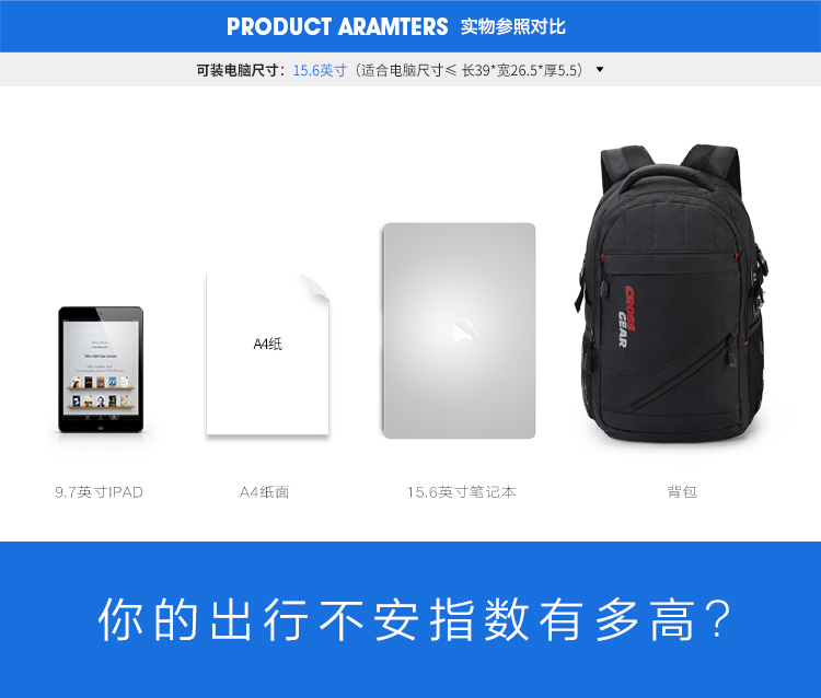 15 inch computer compartment,9.7 inch inch One iPad size pocket;Two side net pockets.