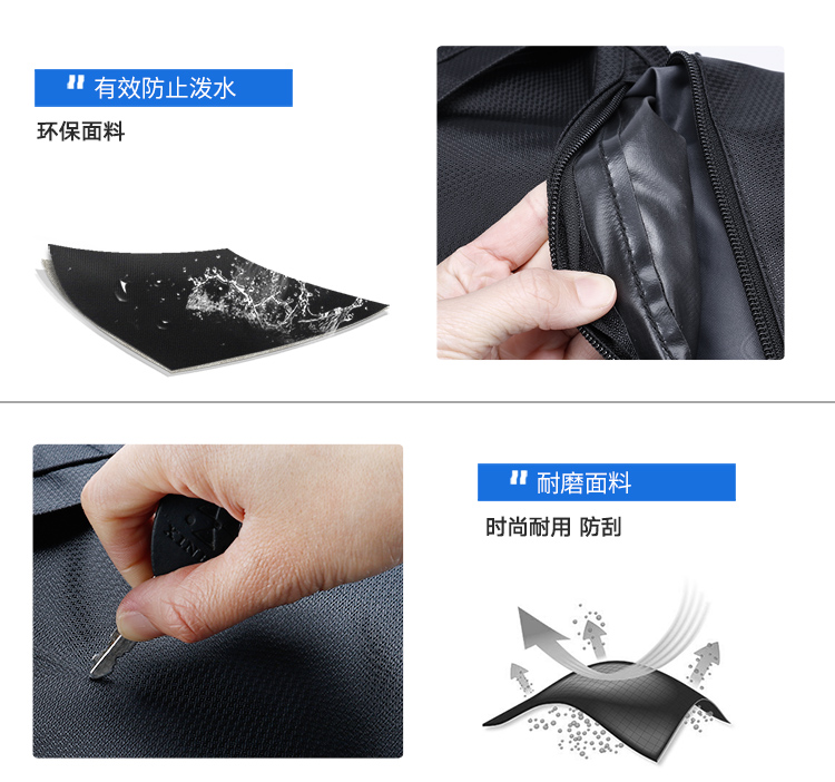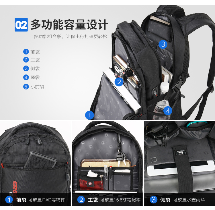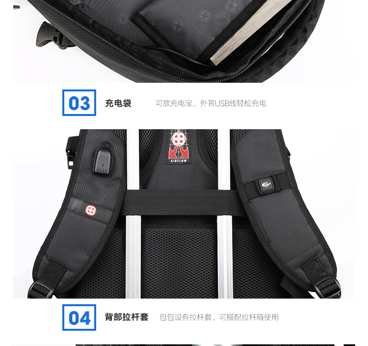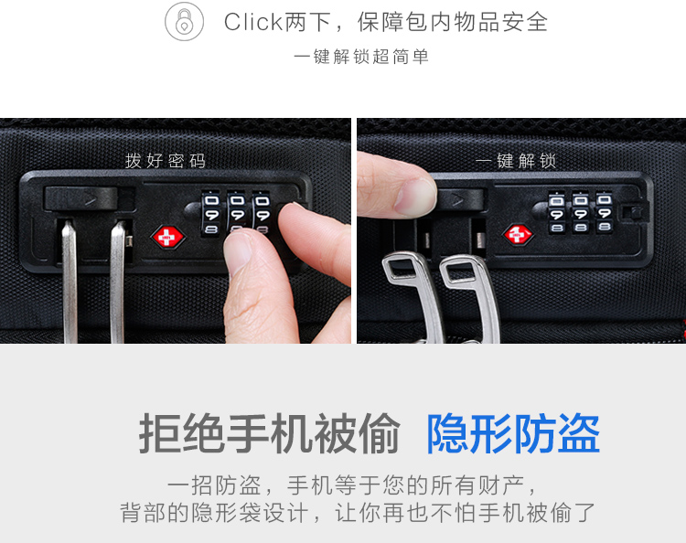 A pull rod can be inserted in the back, and a card and glasses can be inserted in the shoulder strap,have a hide zipper pocket,The shoulder strap has a USB port