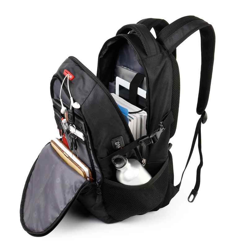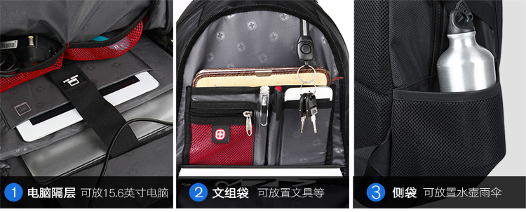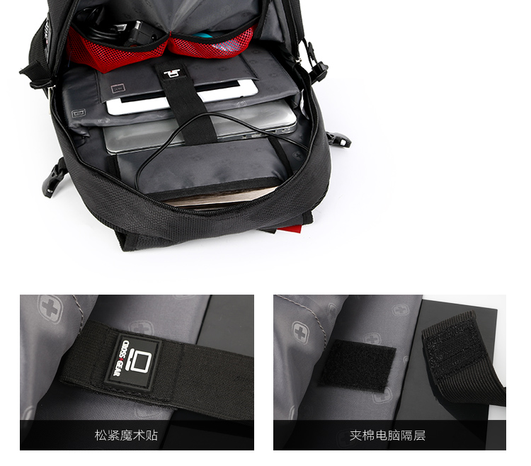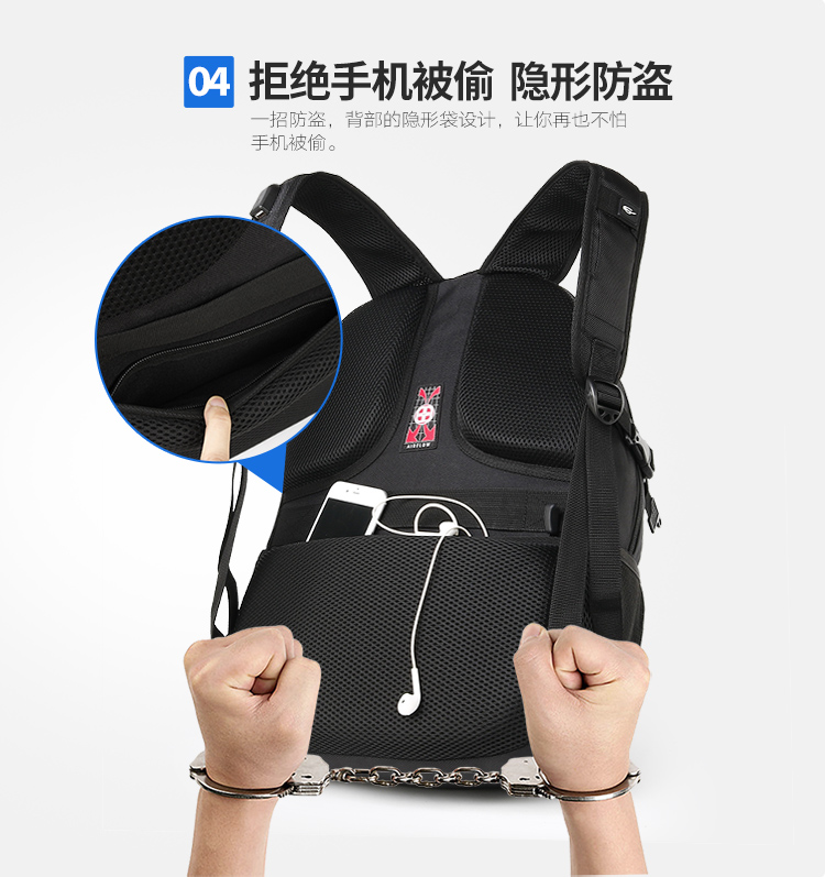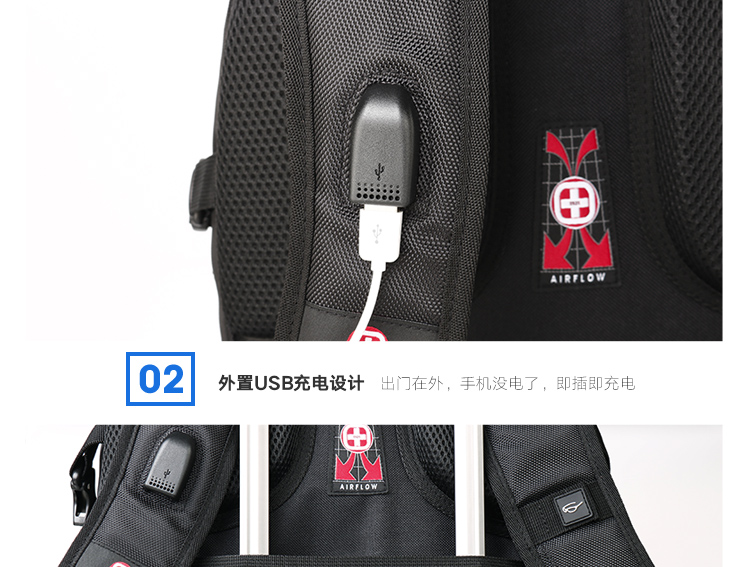 A pull rod can be inserted in the back, and a card and glasses can be inserted in the shoulder strap,have a hide zipper pocket,The shoulder strap has a USB port