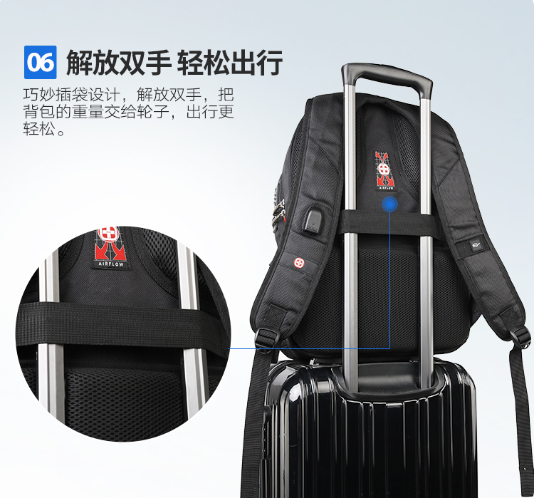 2: A pull rod can be inserted in the back, and a card and glasses can be inserted in the shoulder strap,have a hide zipper pocket,The shoulder strap has a USB port