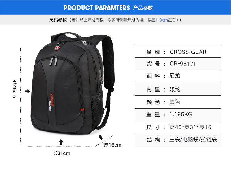 1: Organization pocket(book pocket、certificate bag, small net zipper bag,Two pecncil pockets,One key chain5 inch computer compartment,9.7 inchOne iPad size pocket;Two side mesh pockets